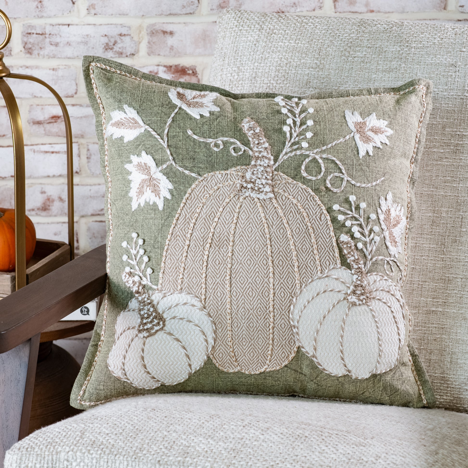 18 X 18 AUTUMN PUMPKINS GREEN PILLOW