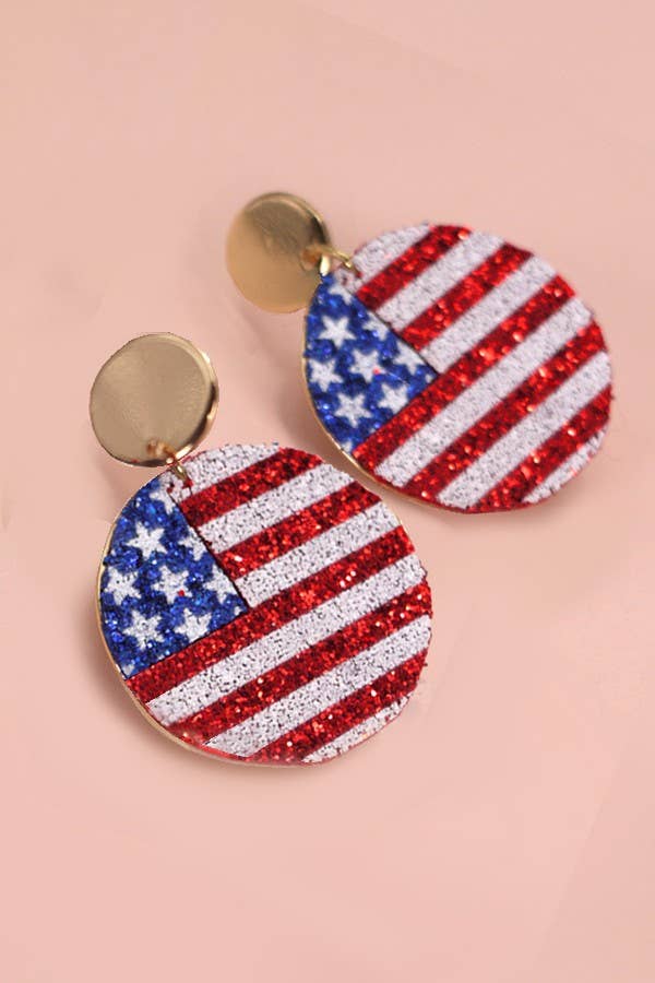 These earrings feature a festive design inspired by the American flag, with vibrant red, white, and blue accents that capture the spirit of Independence Day. Crafted with attention to detail and quality materials, these earrings are lightweight and comfortable to wear all day long. Whether you're attending a Fourth of July barbecue, fireworks display, or simply showing your patriotic pride, our Flag Drop Earrings are the ideal choice. Product Details: length: 1.75" width: 1.25" earring back: Post