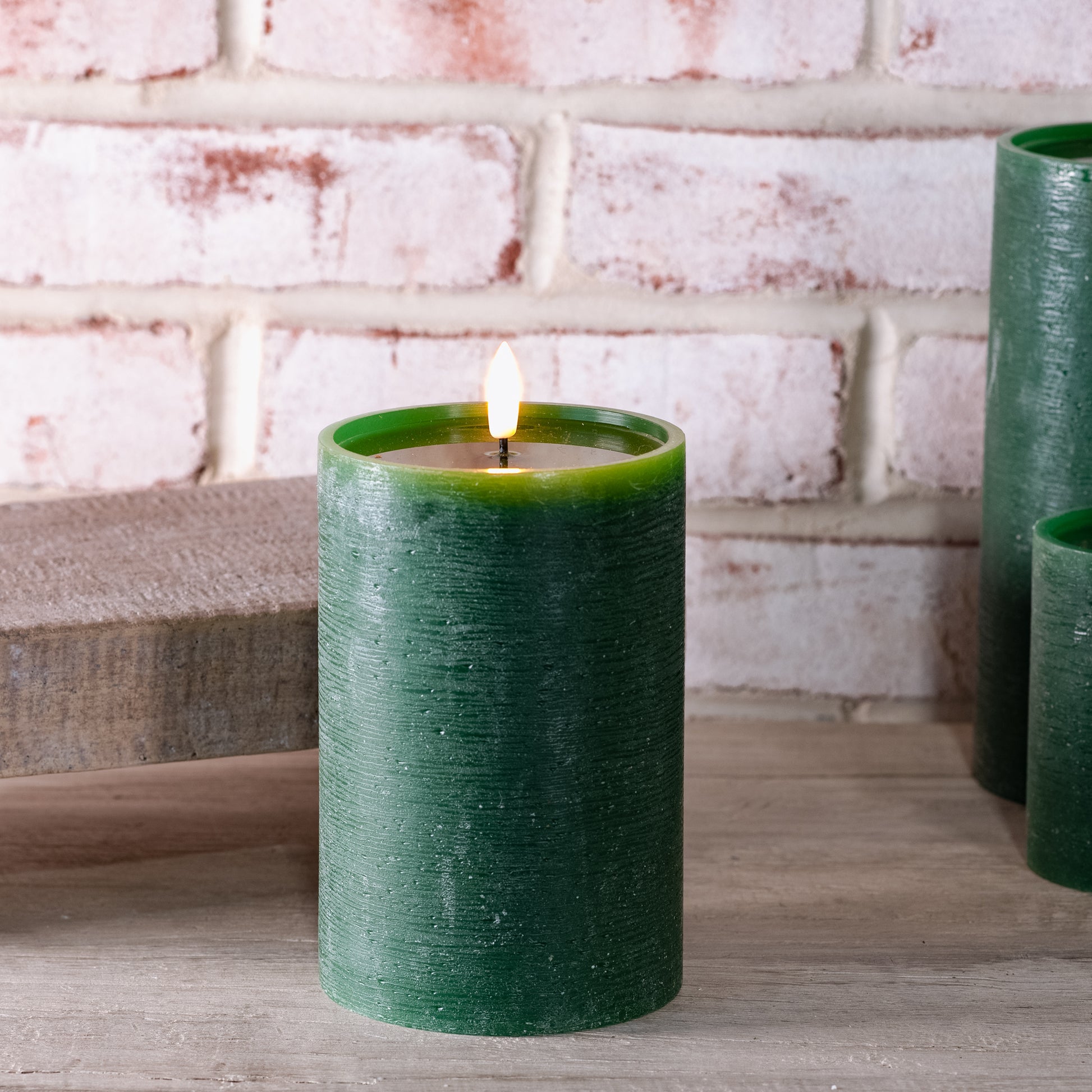 6" GREEN WIDE LED PILLAR CANDLE w/Timer