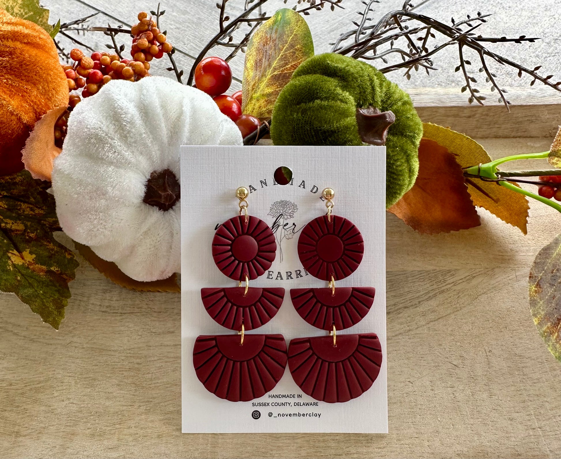 Burgundy Boho Circle & Half Circles 3 Tier Dangle