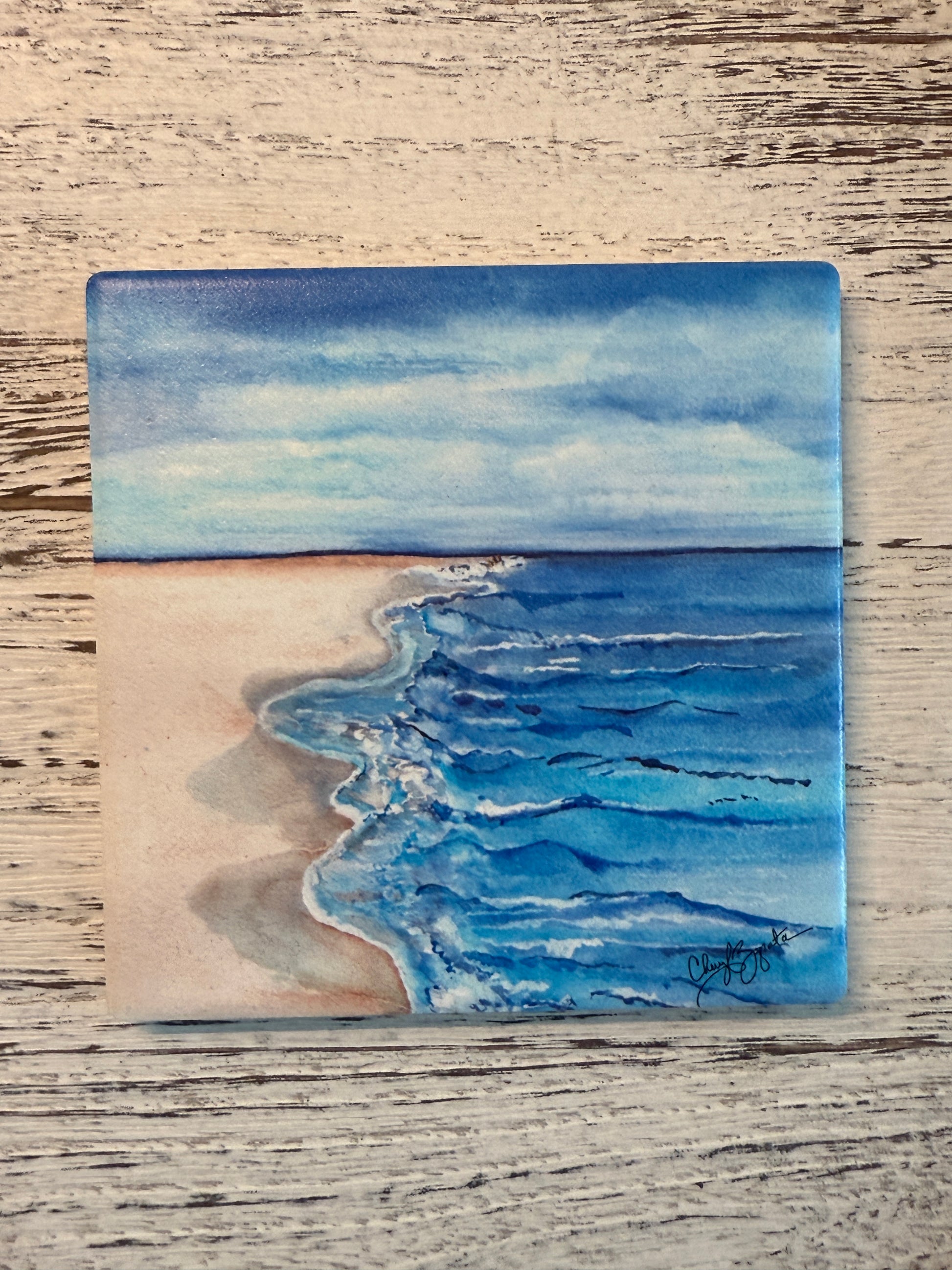 Coastal Drift Square Ceramic Coaster by Cheryl Zapata Art