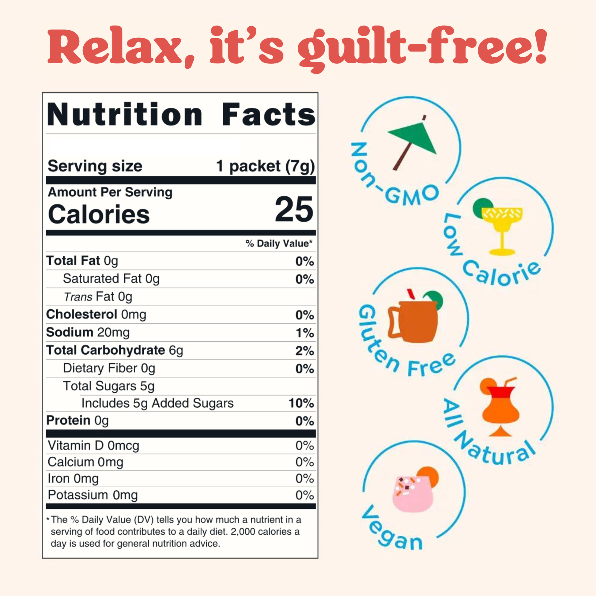 Create a skinny mix with no health shame! Our products are made with natural ingredients and are low sugar, low calorie, gluten free, soy free, vegan, fat free, cholesterol free, dairy free, non GMO, and made in the USA.