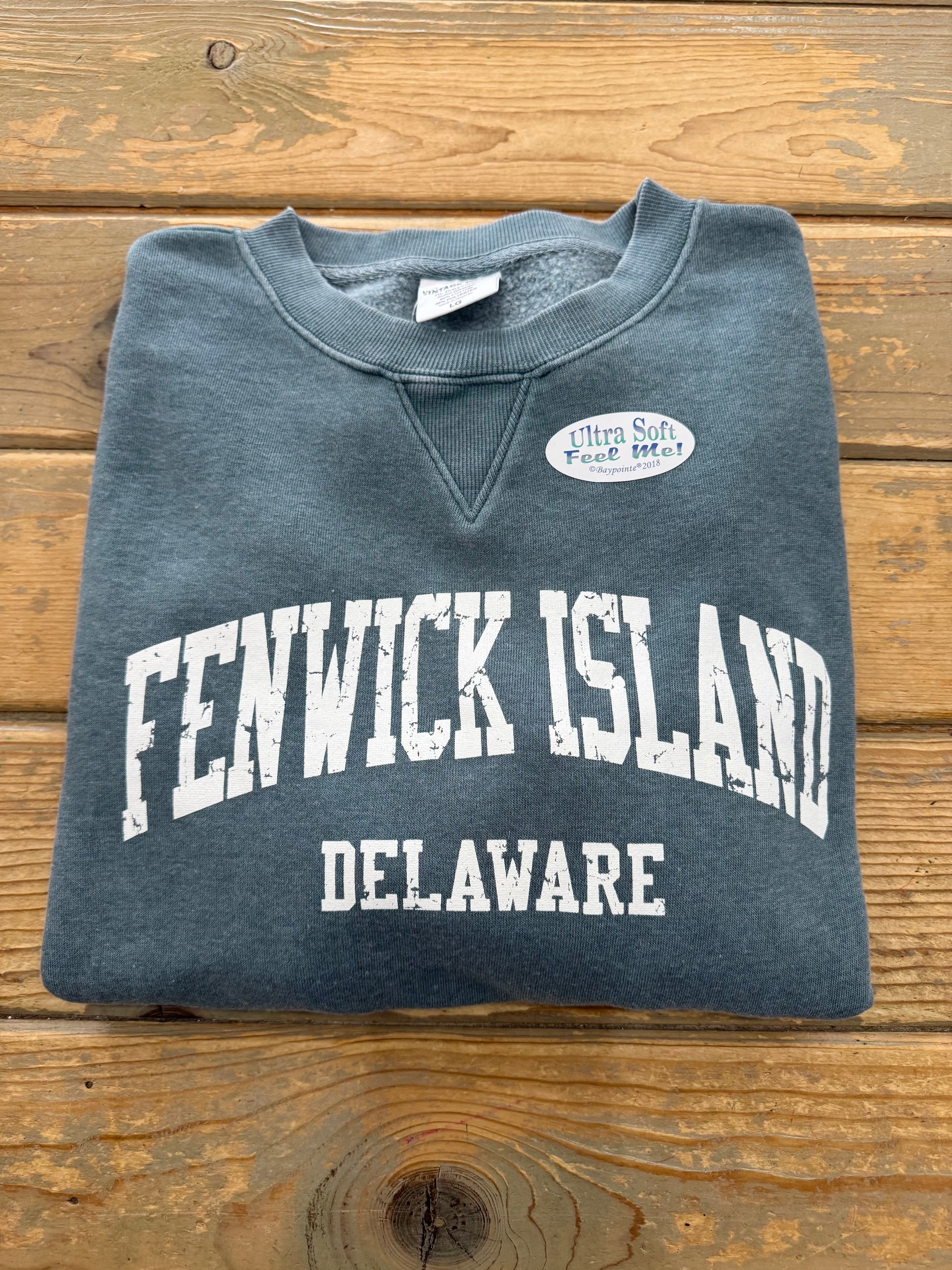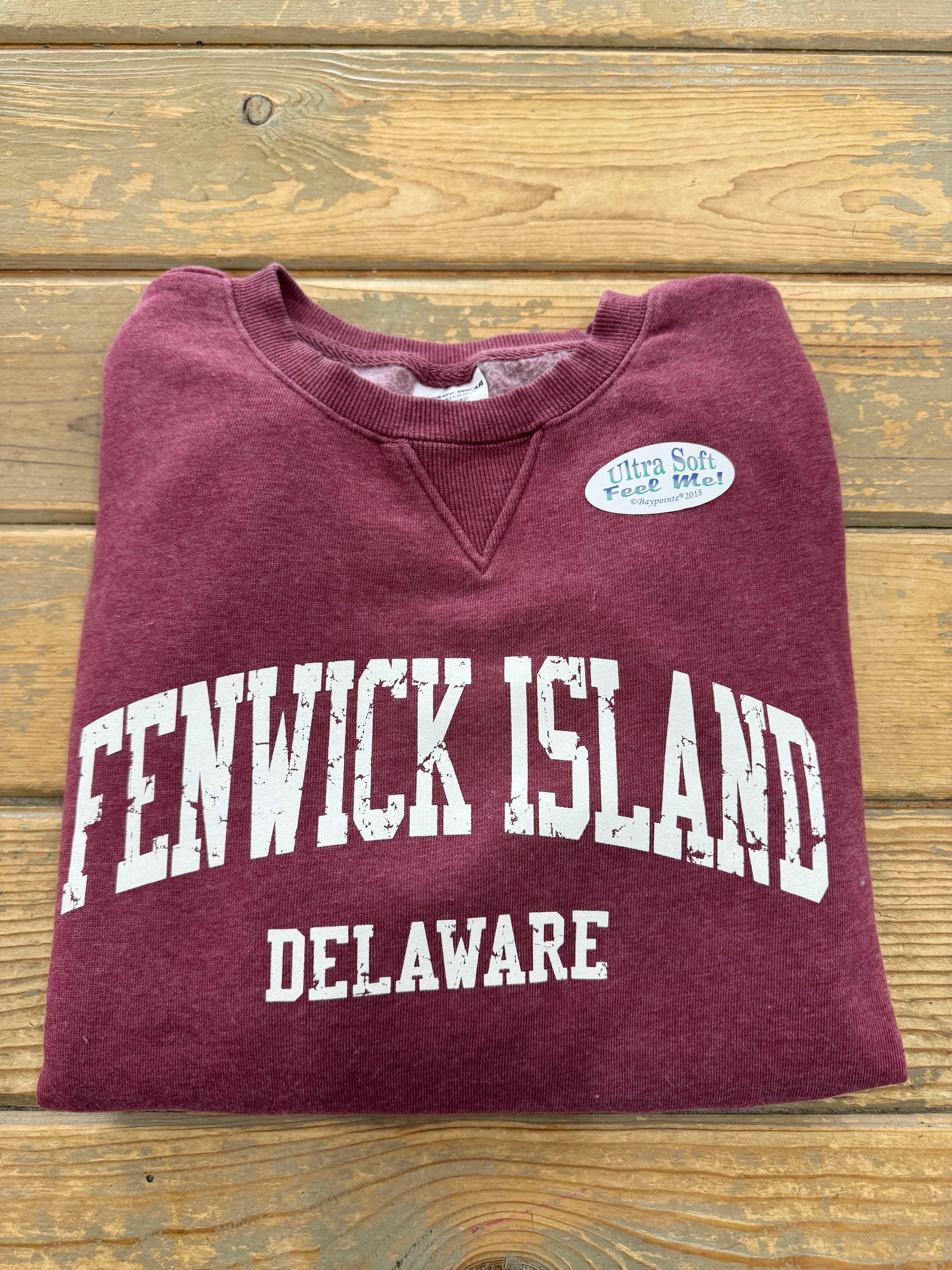 Unisex Fenwick Island, DE Logo Crewneck Sweatshirt. Ultra soft burn washed cotton/poly blend. This will be your favorite go to sweatshirt!