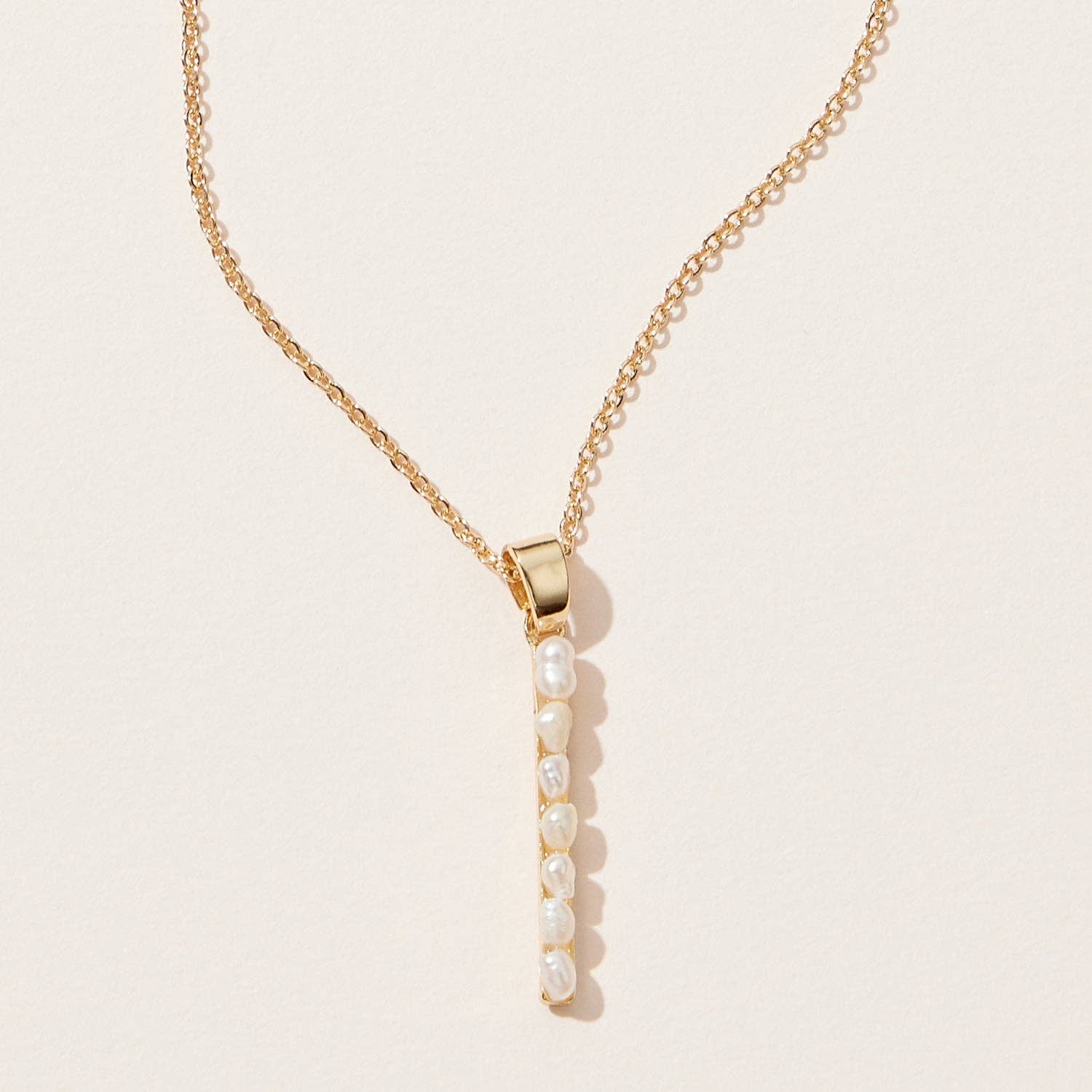 Gold Bar Pendant Necklace with Freshwater Pearls