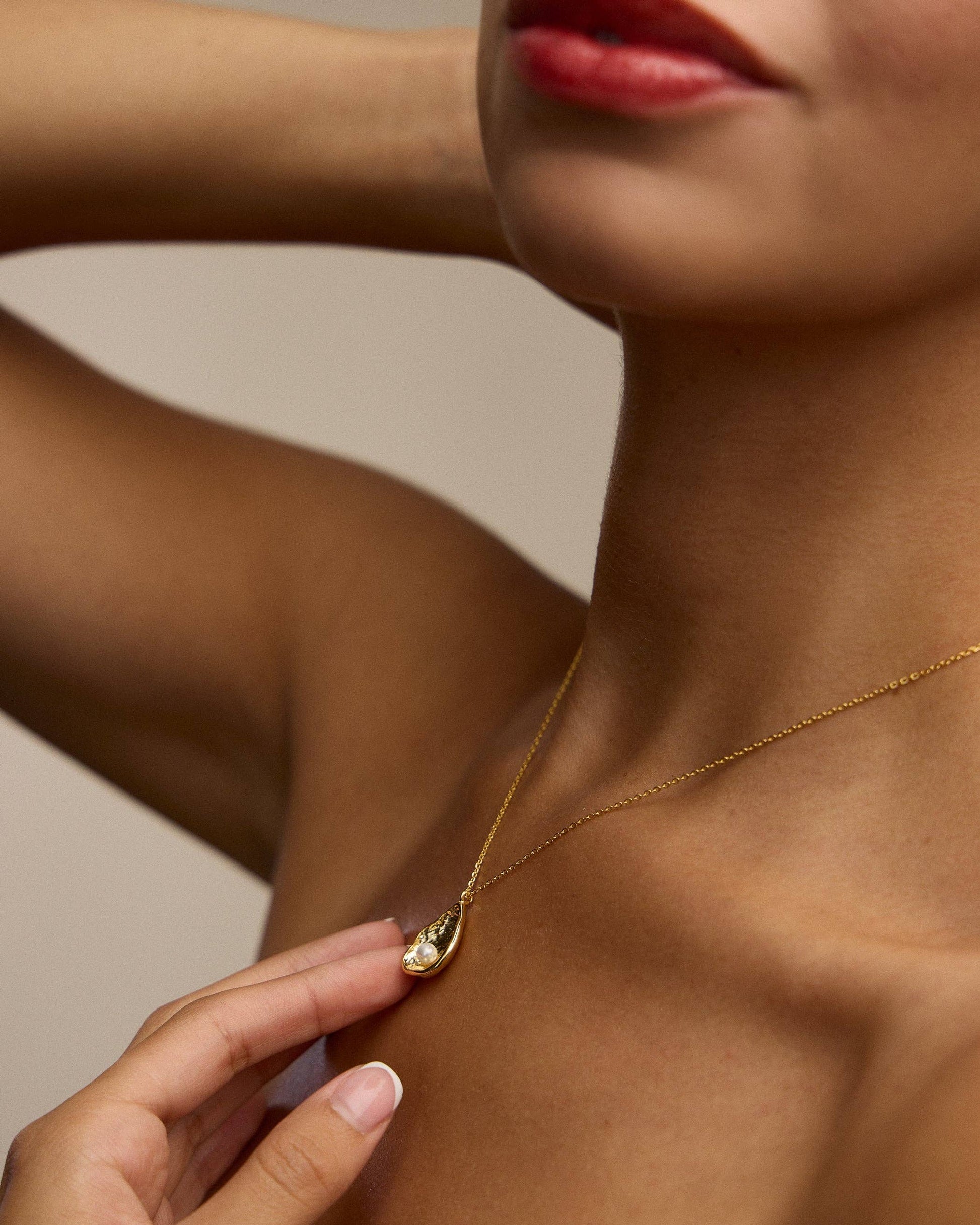 Embrace coastal elegance with this gold shell pendant necklace featuring a luminous faux pearl nestled inside. Designed with a textured shell and polished gold finish, this piece captures ocean-inspired charm with a touch of luxury. Crafted on a durable brass base, it's lightweight, stylish, and perfect for layering or wearing solo.