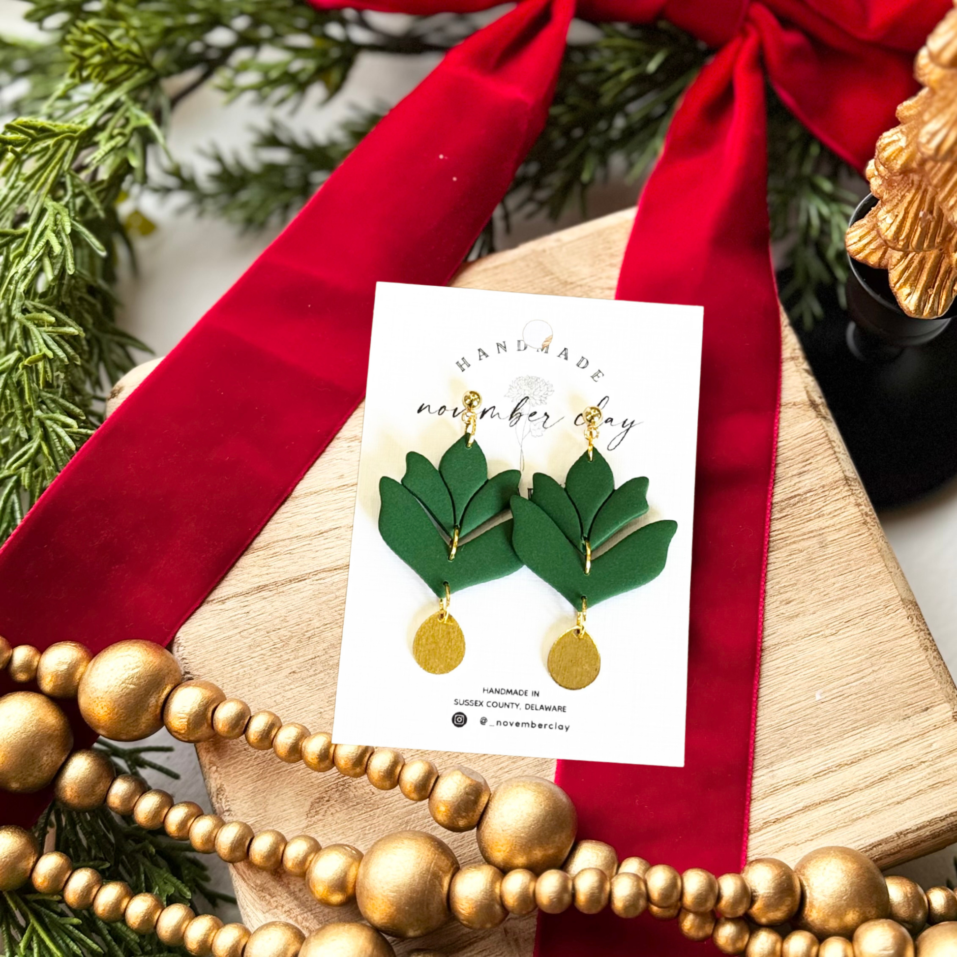 Green Tulip Shape w/Gold Teardrop Dangle