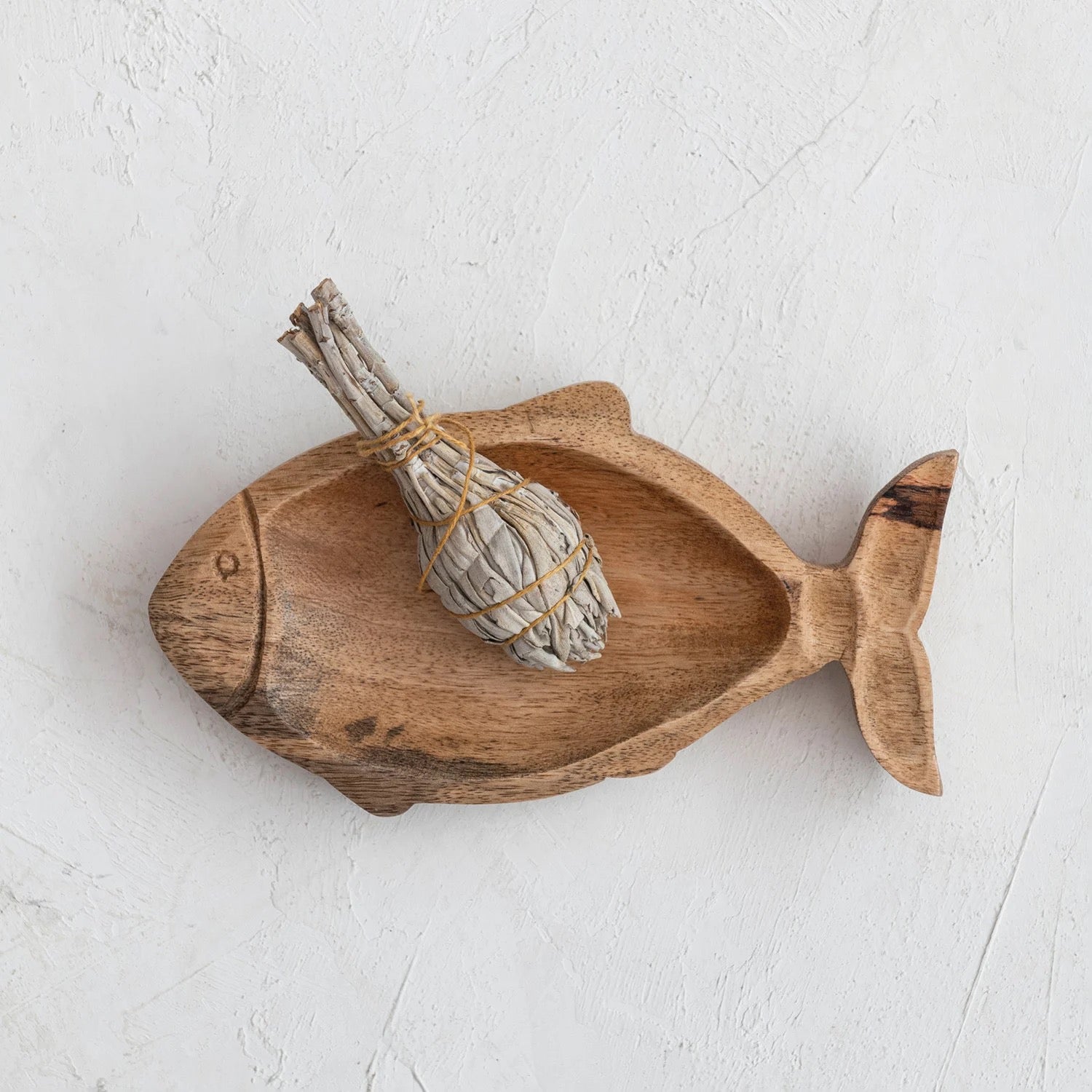 Hand-Carved Mango Wood Fish Shaped Dish, Natural (Each One Will Vary)