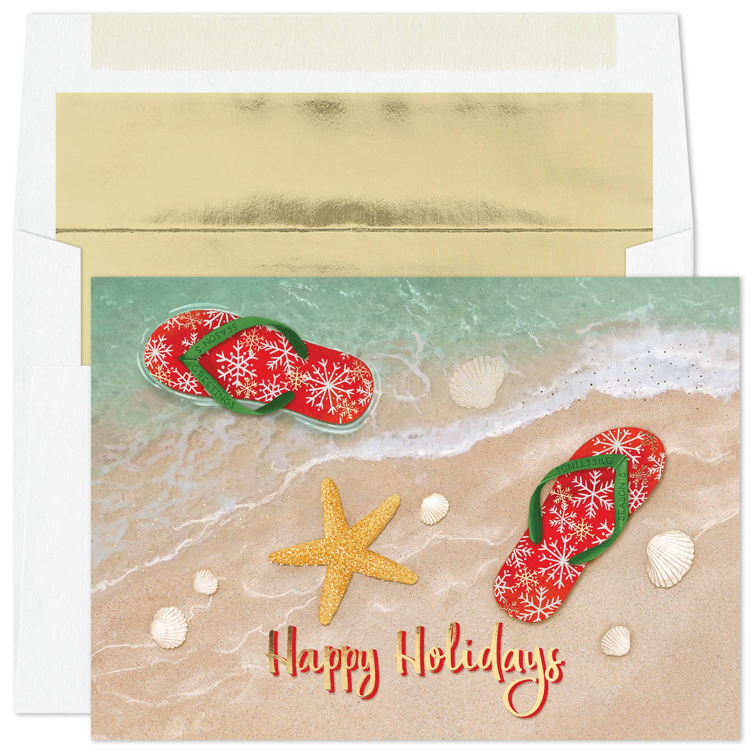Beautiful design perfect for celebrating the holidays in warm and coastal areas, featuring goil foil.