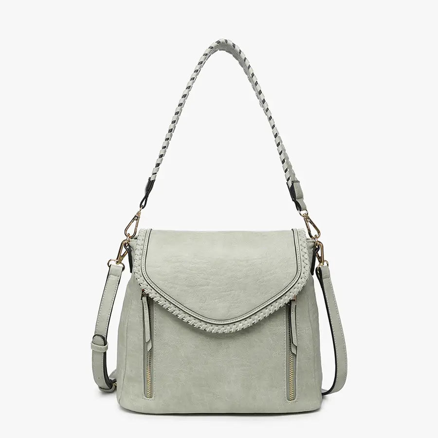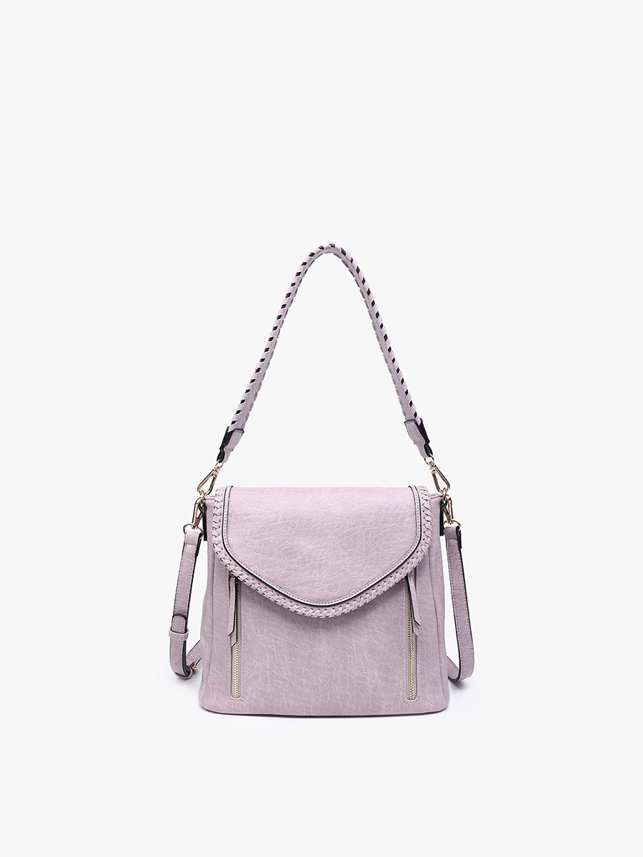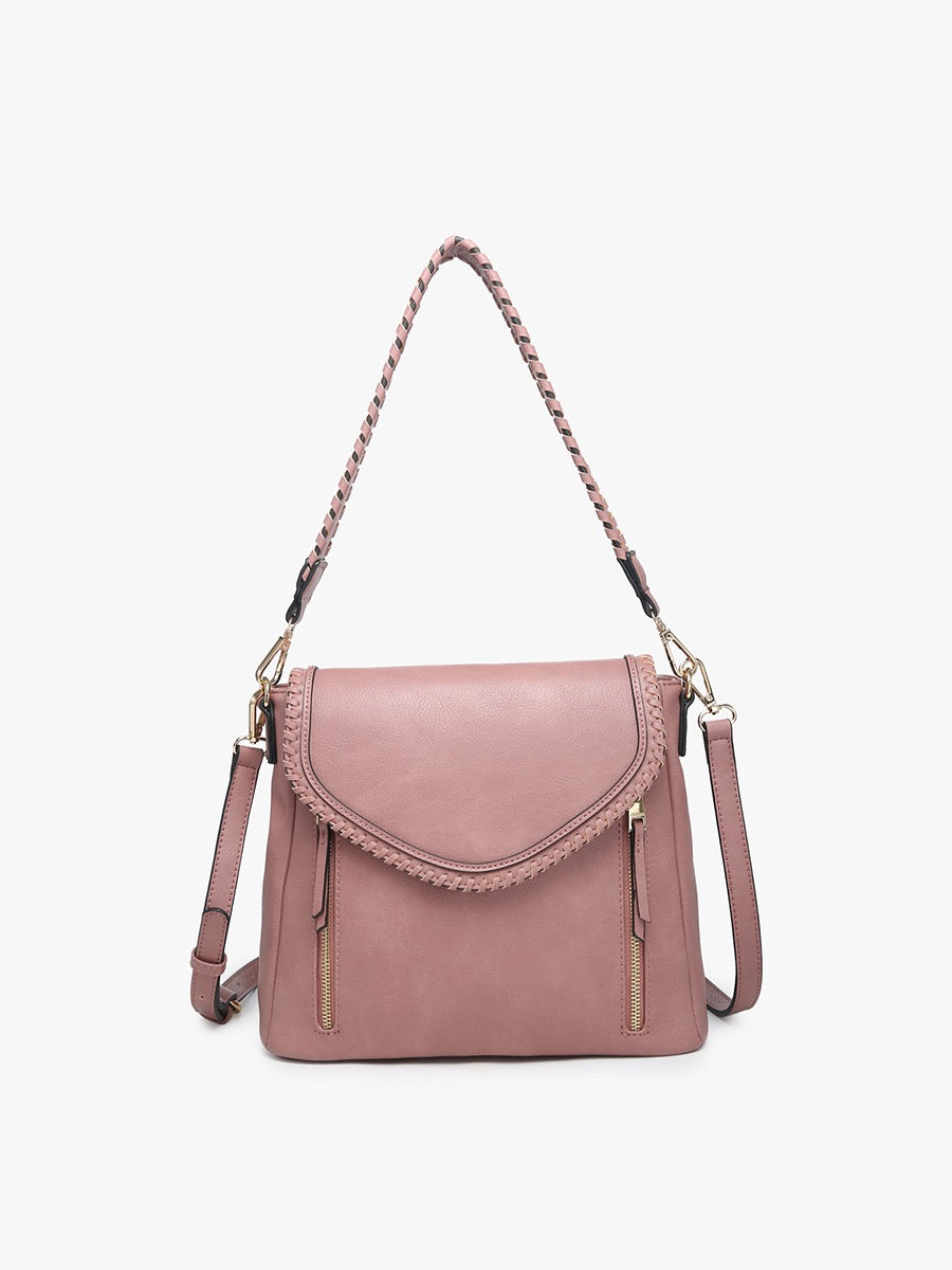 This crossbody bag is designed with practicality and style in mind, featuring a dual zip front pocket for added convenience. The braided edge flapover closes securely with a snap, ensuring the safety of your belongings. Lorelei offers versatility with two straps: a removable braided shoulder strap and an adjustable/removable crossbody strap, allowing you to carry it in multiple ways. Inside, you'll find slip and zip pockets for efficient organization of your essentials. Crafted from soft vegan leather, Lorelei combines comfort and elegance seamlessly. With dimensions measuring 10"L x 12"H x 4"D and a drop of 10", Lorelei is the perfect accessory to complement your daily adventures.