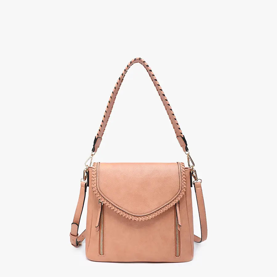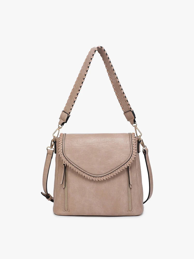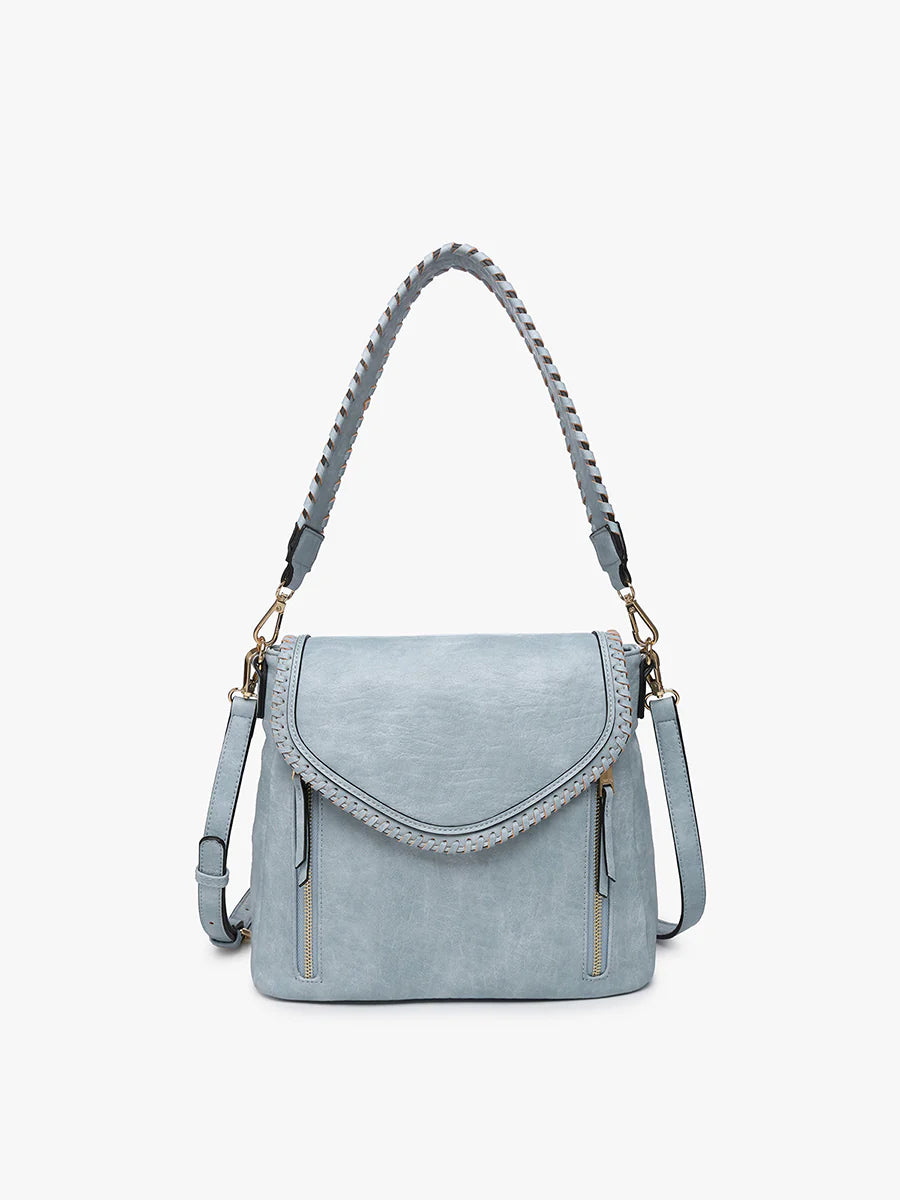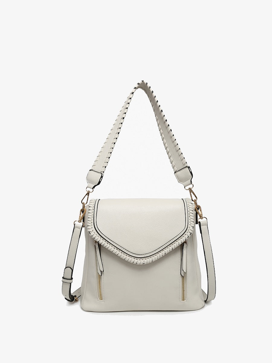 This crossbody bag is designed with practicality and style in mind, featuring a dual zip front pocket for added convenience. The braided edge flapover closes securely with a snap, ensuring the safety of your belongings. Lorelei offers versatility with two straps: a removable braided shoulder strap and an adjustable/removable crossbody strap, allowing you to carry it in multiple ways. Inside, you'll find slip and zip pockets for efficient organization of your essentials. Crafted from soft vegan leather, Lorelei combines comfort and elegance seamlessly. With dimensions measuring 10"L x 12"H x 4"D and a drop of 10", Lorelei is the perfect accessory to complement your daily adventures.