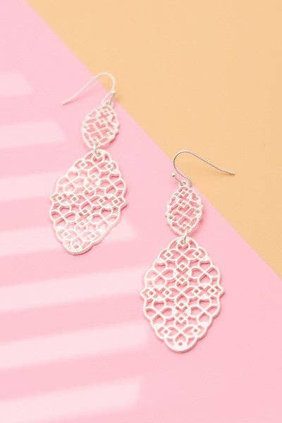 Lustrous beams of metal radiate from these uniquely-shaped and effortlessly modern earrings. This pair of drop earrings feature matte filigree drop earring.