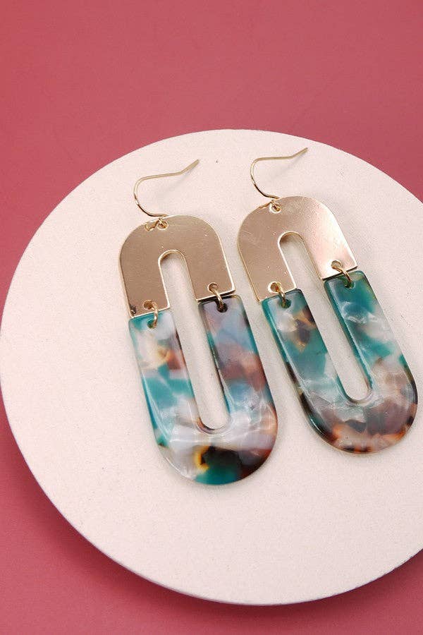 Inspired by nature and its rainbows, the rainbow long dangle earring features a unique silhouette that adds an effortlessly cool statement to any outfit. U shape with mixed metal and acrylic.