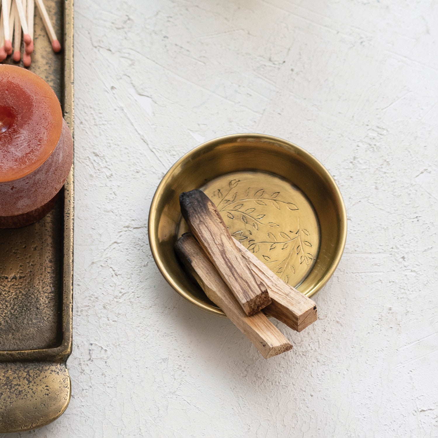Metal Dish w/ Etched Floral Design, Antique Brass Finish