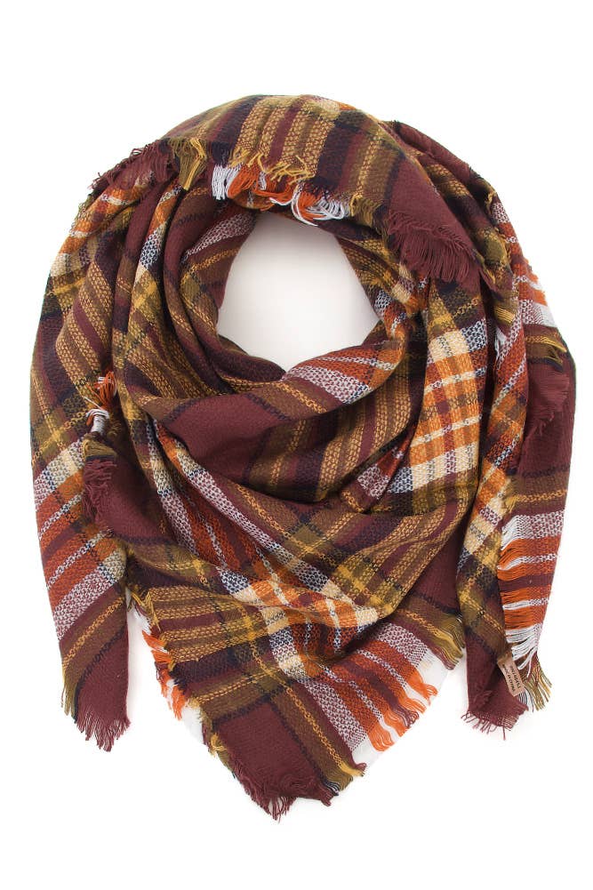 Coffee Oversize Plaid Check Pattern Winter Scarf