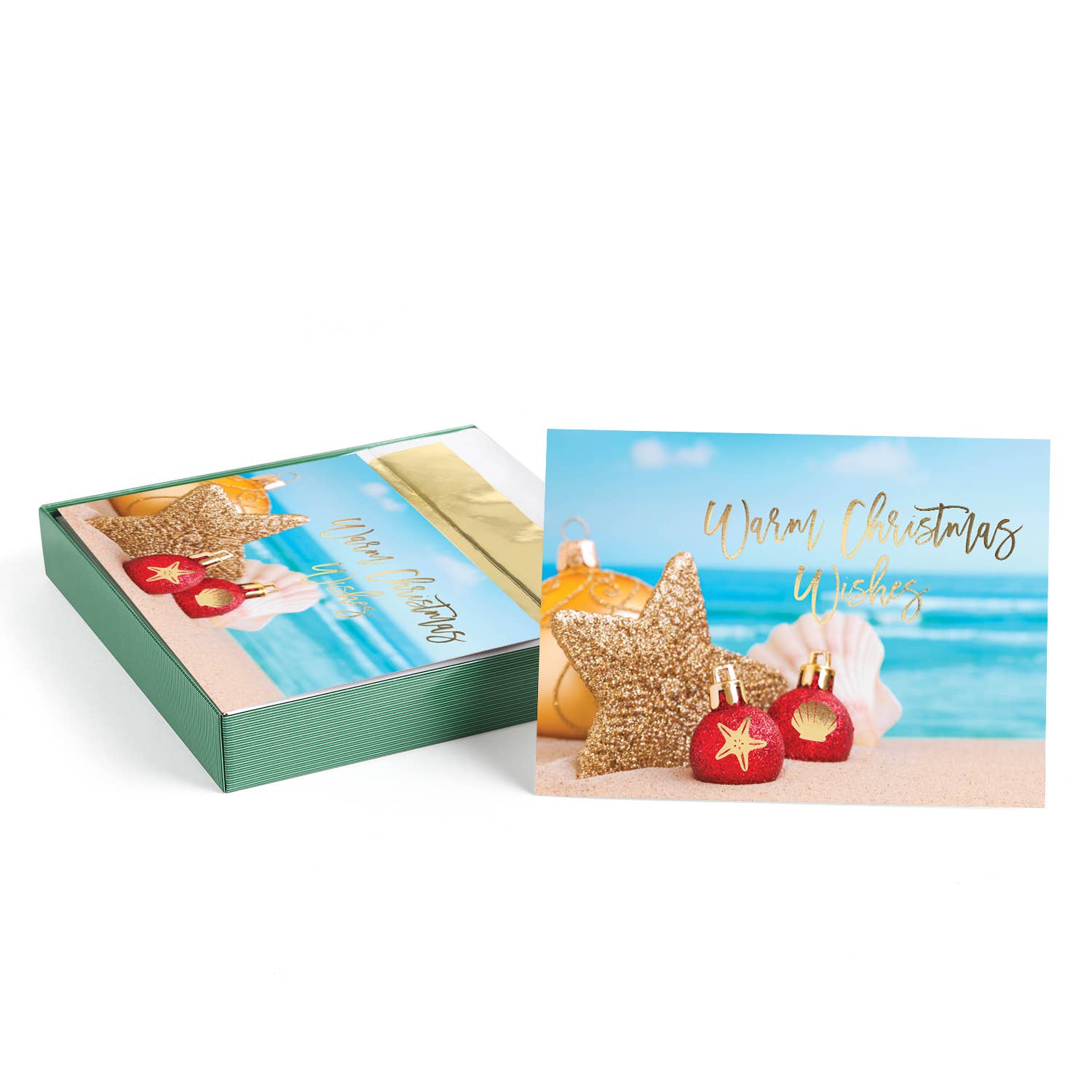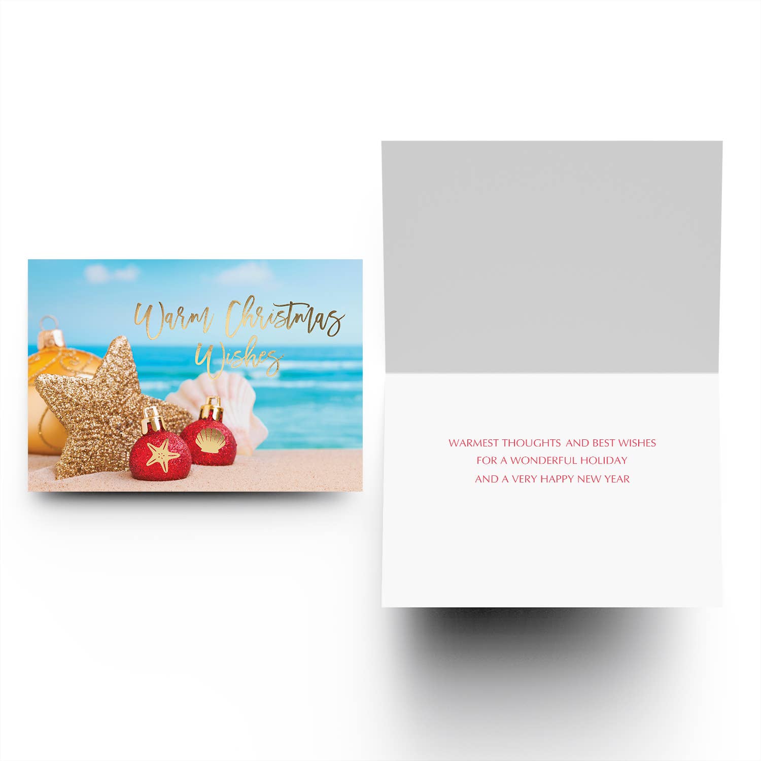Beautiful design perfect for celebrating the holidays in warm and coastal areas, featuring goil foil.