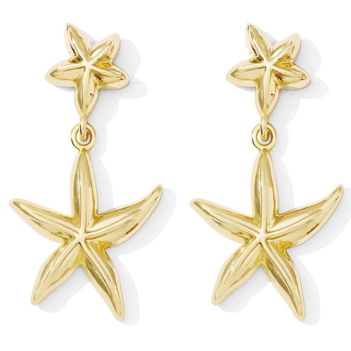 Tiny starfish stud stacked atop a larger starfish! Ocean-approved earrings for stylish mermaids and playful landlubbers alike.