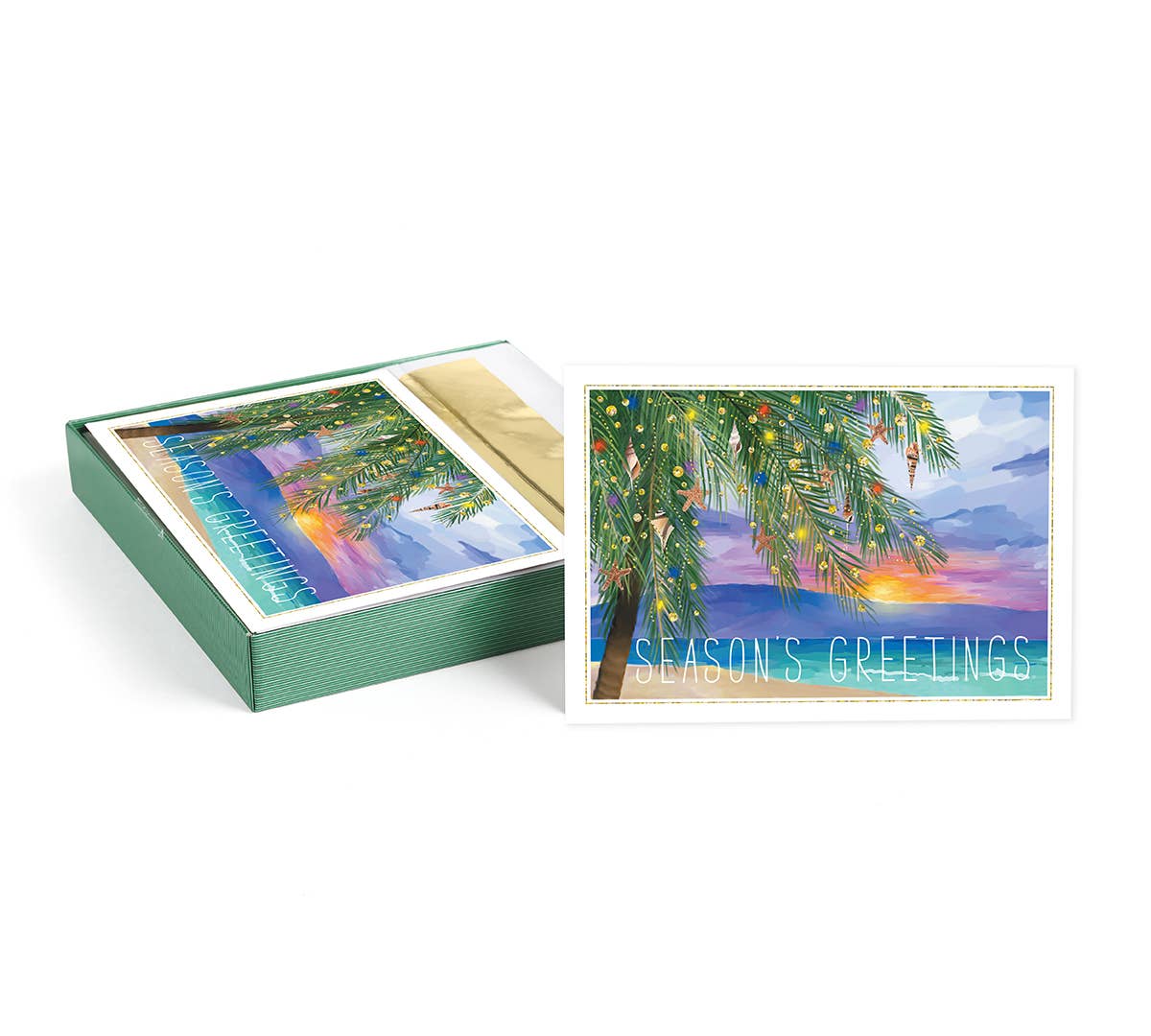 Best selling design! Beautiful design perfect for celebrating the holidays in warm and coastal areas, featuring goil foil and glitter.