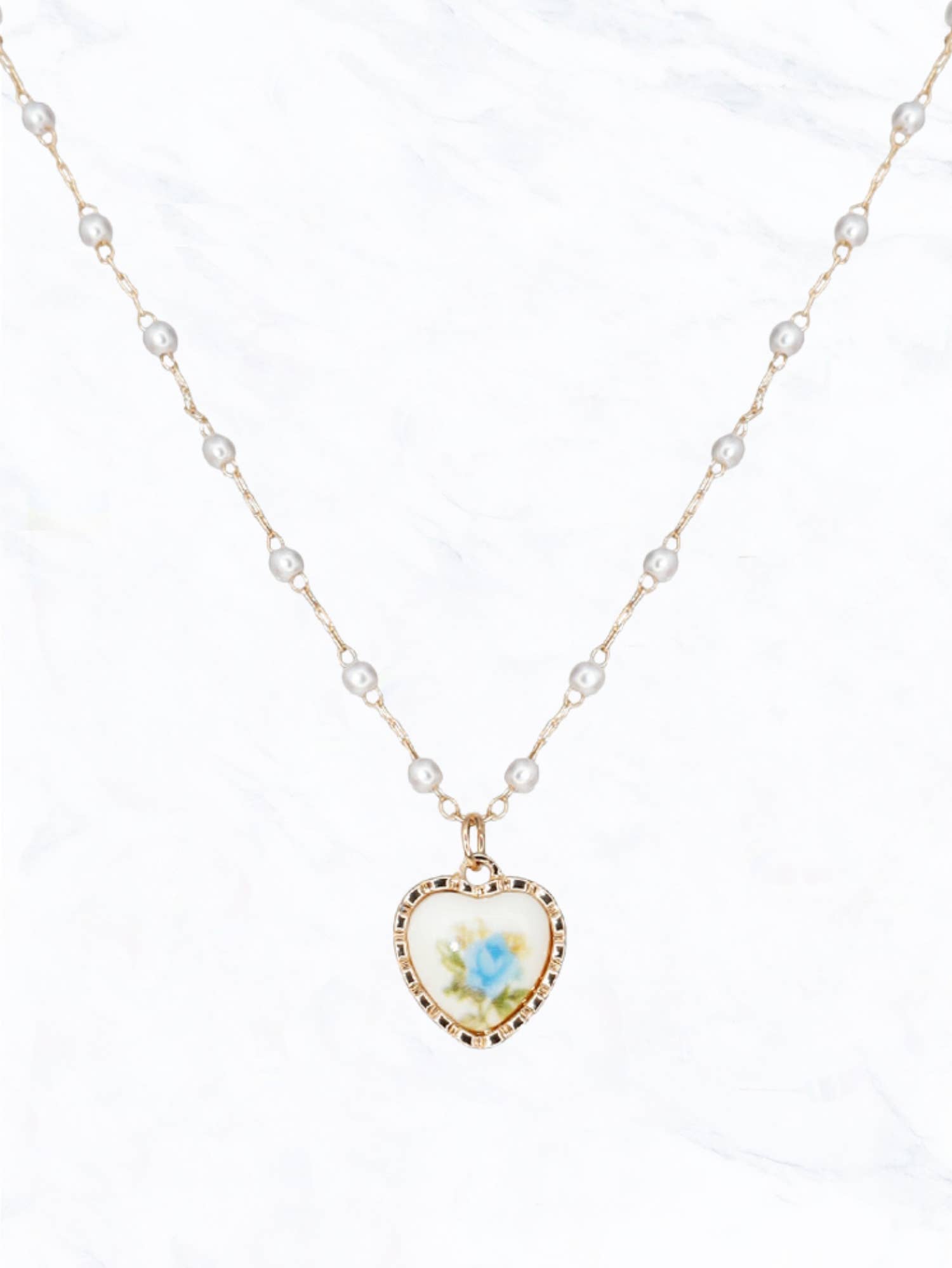 Vintage Rose Heart Pendant Necklace: Turquoise