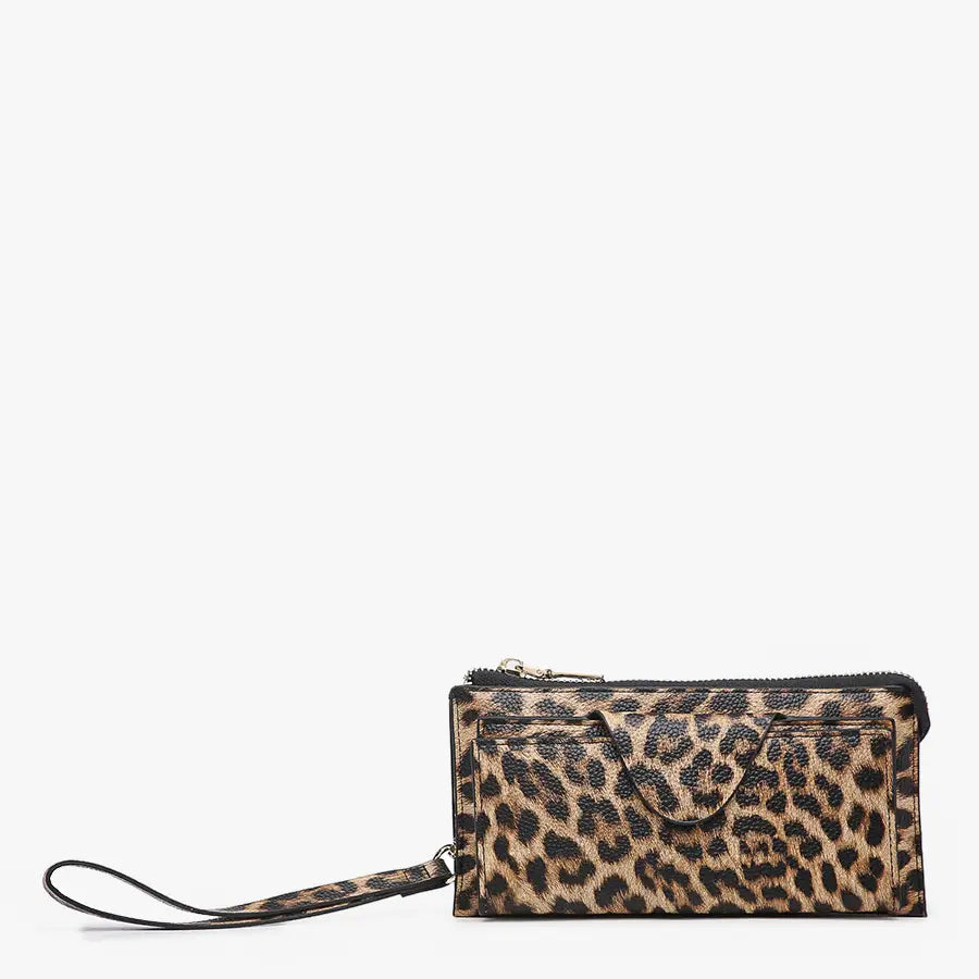 Features multiple card slots and an ID slot that snap closed, a zip change pocket, and a wristlet strap to carry it with ease. RFID safe! Made of vegan leather.