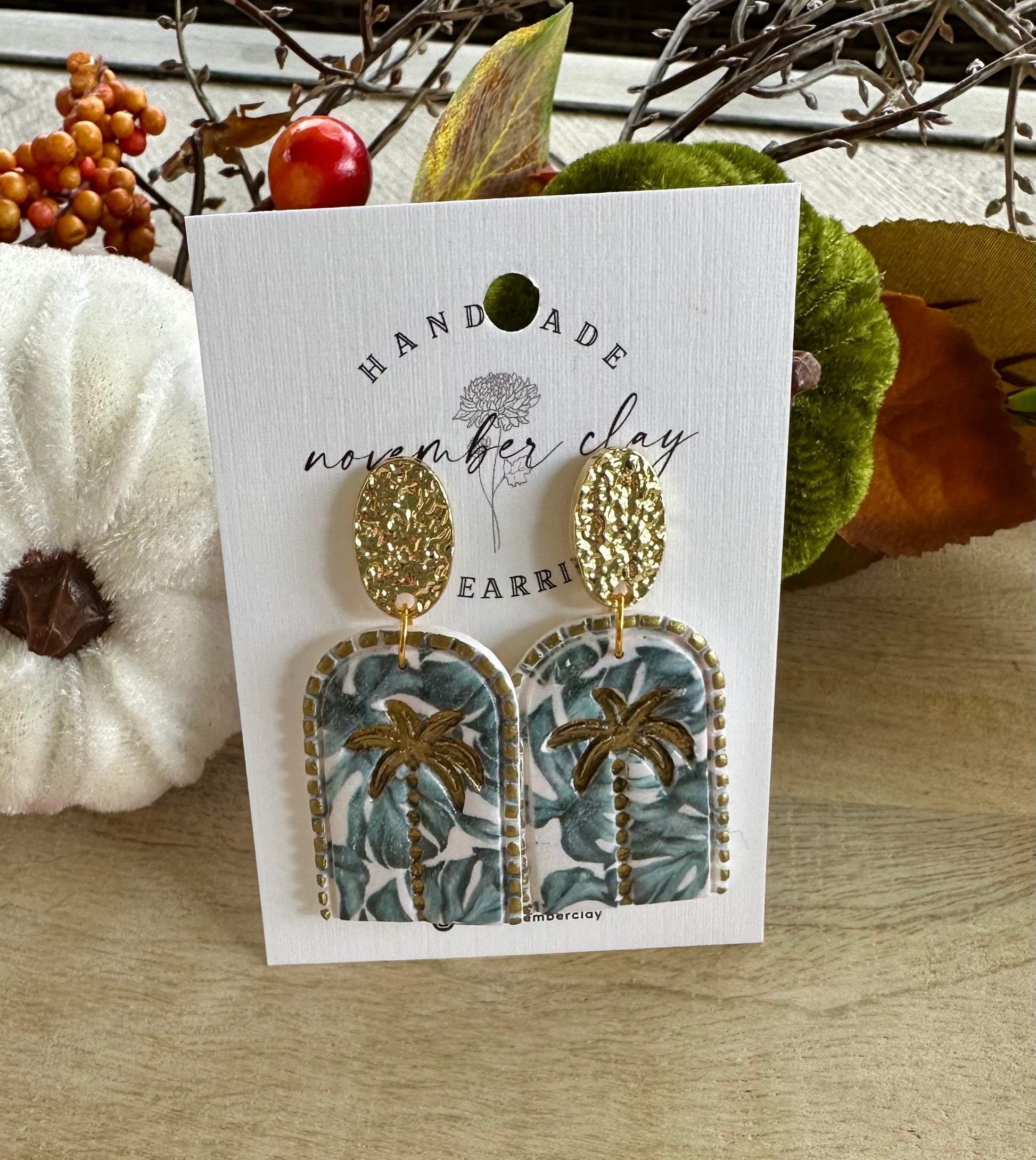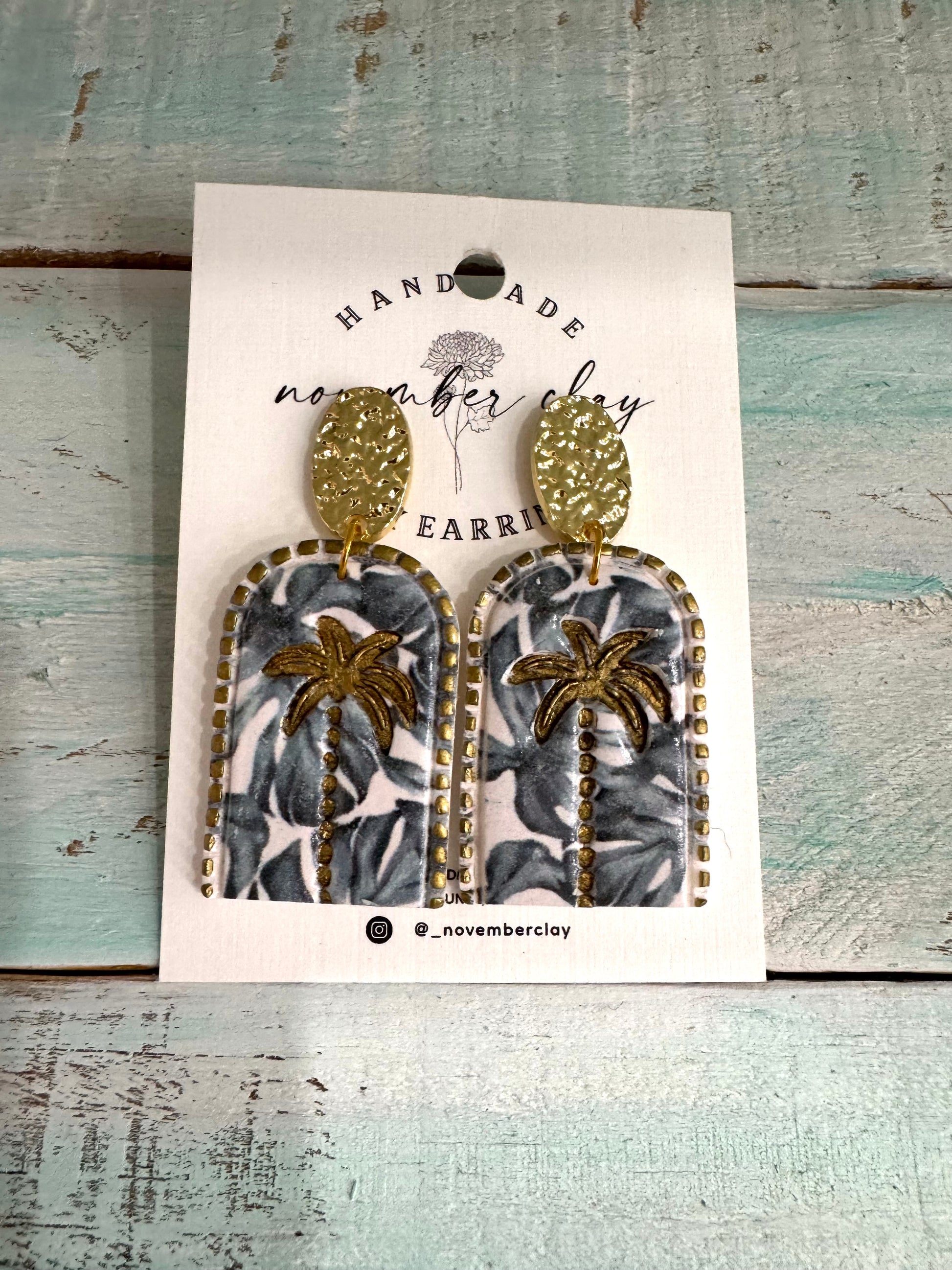 Window Arch Monstera Print w/Gold Palm & Gold Oval Post